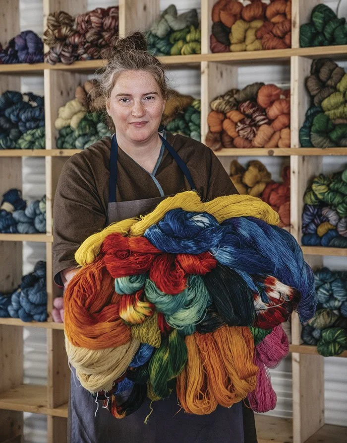 The foundational yarn I use is from Iceland. My favorite is from Hespa, an independent yarn dying studio in southern Iceland. Owned and operated by Guðrún Bjarnadóttir, her wool is dyed using plants native to Iceland and is perfect for my work. Hespa is open year round and should not be missed if you are ever in Iceland.